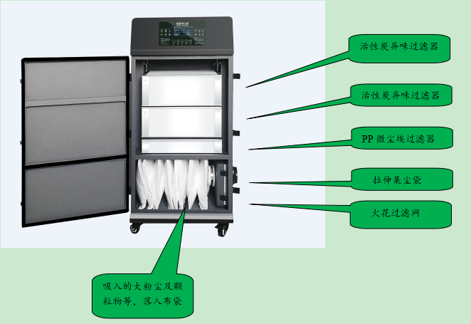 針對(duì)激光打標(biāo)、激光雕刻切割、激光焊接焊錫、拋光打磨、等場(chǎng)合所產(chǎn)生的煙霧、粉塵、以及少量異味、有毒有害氣體進(jìn)行綜合凈化過濾。